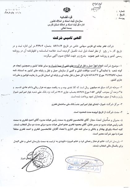 مقالات و اخبار شرکت فخر جاده ای فارس